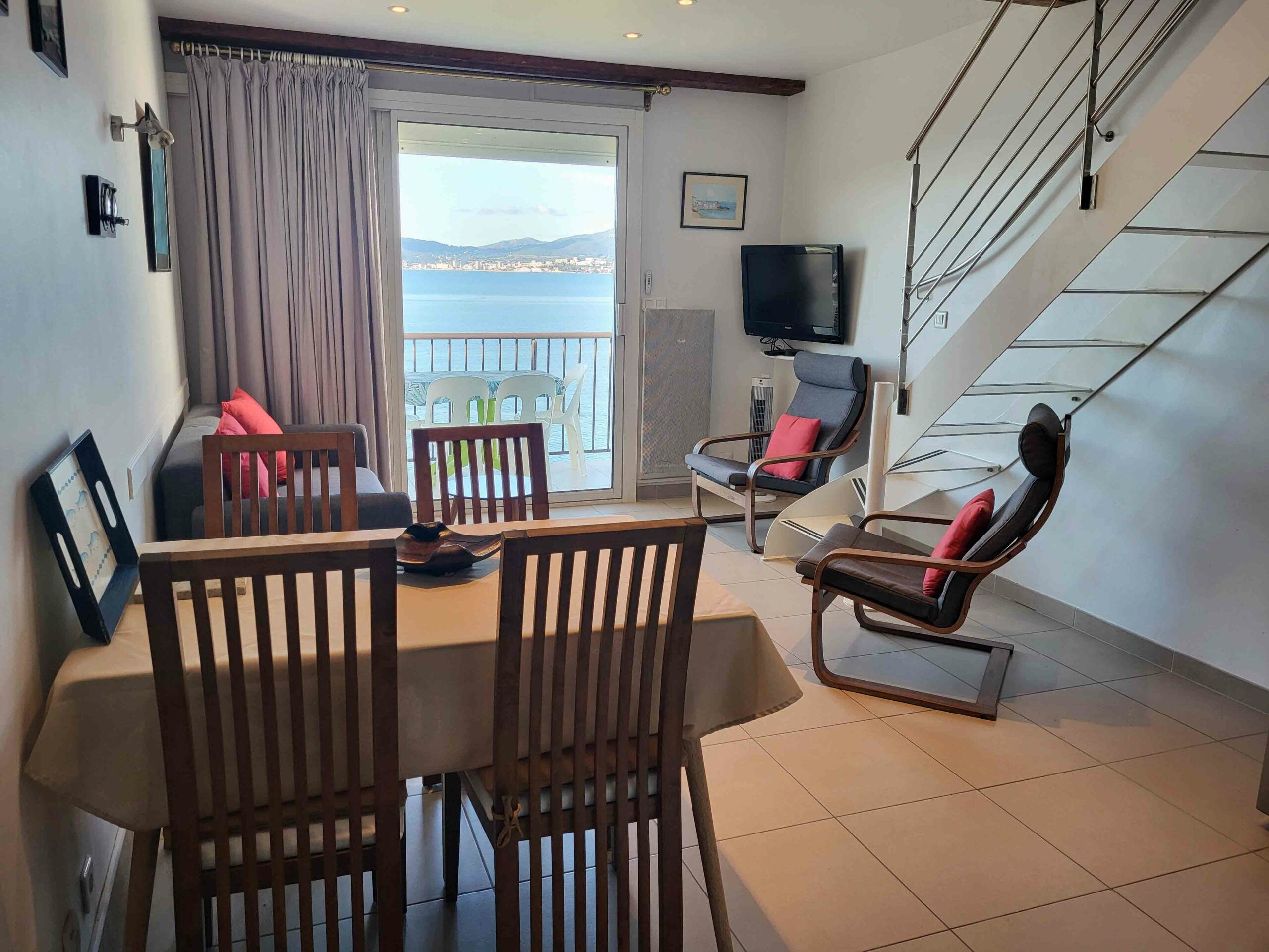 - Véritablement « pieds dans l’eau » en première ligne front de mer. Plage juste en bas.