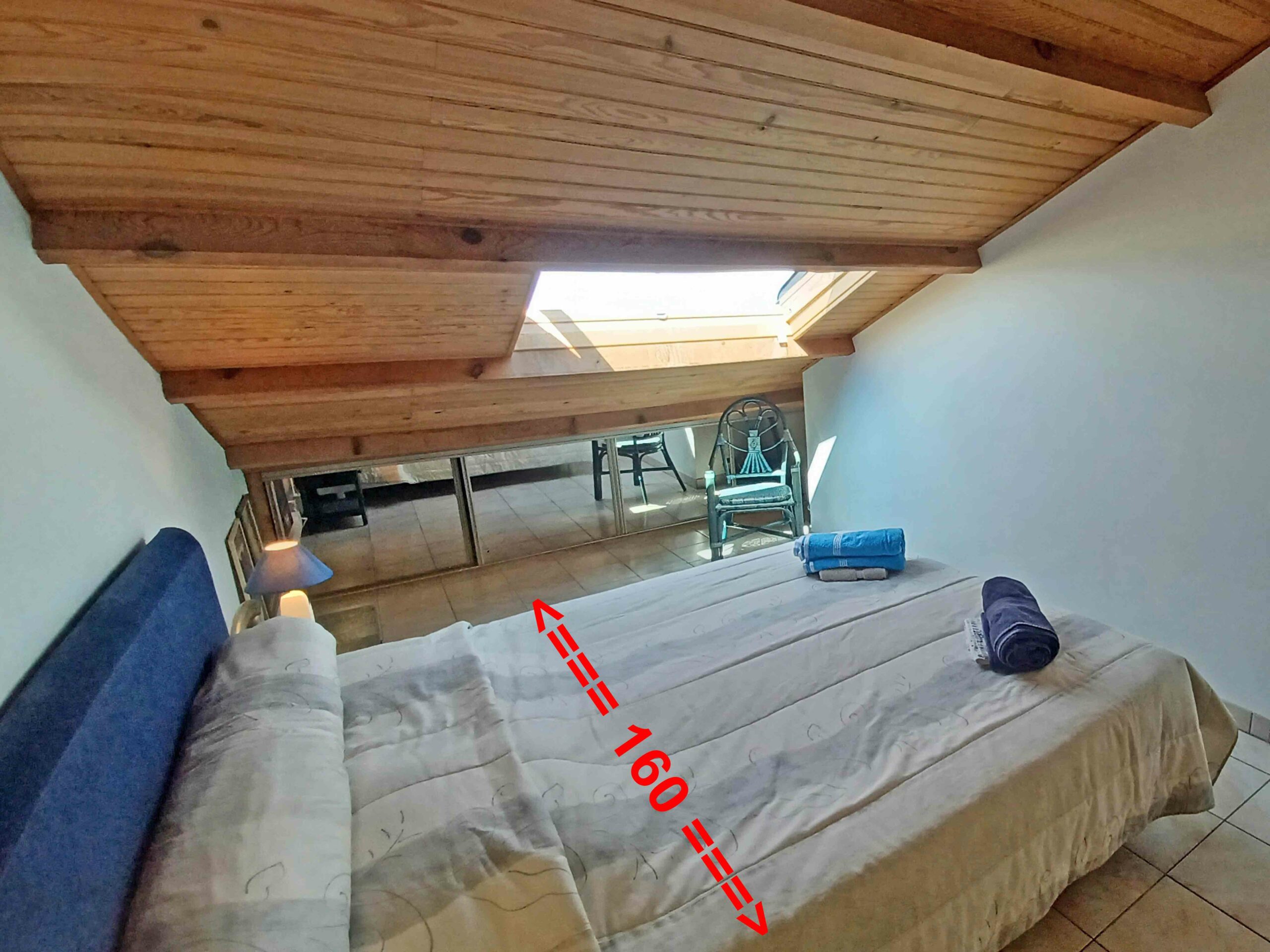 - Chambre 1 : lit en 160 cm. Climatisation. Fenêtre avec store électrique occultant. Rangements.