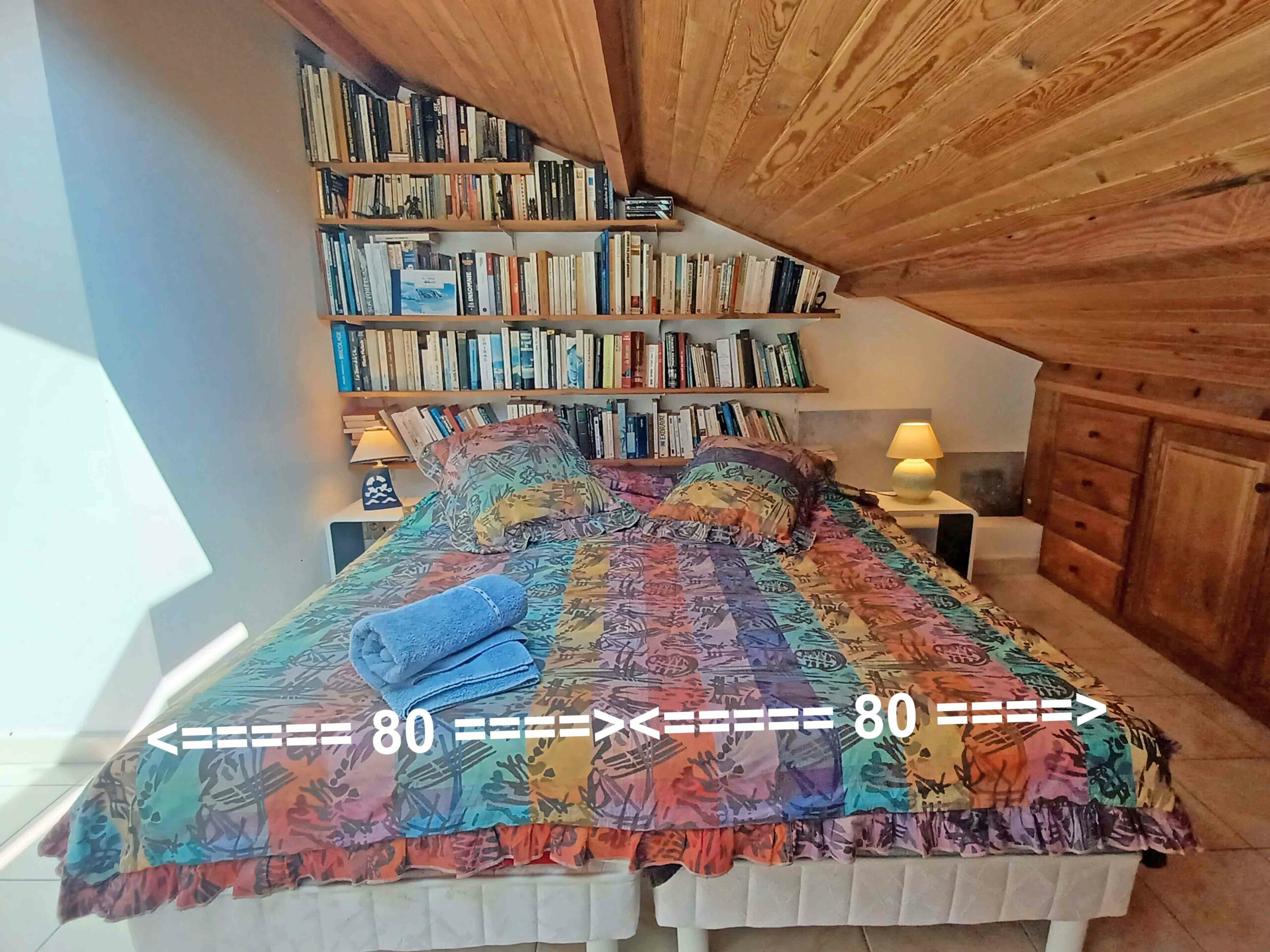 - Chambre 2 : lit en 160 cm séparable en 2 x 80 cm. Climatisation. Fenêtre avec store électrique occultant. Bibliothèque. Bureau. Rangements.